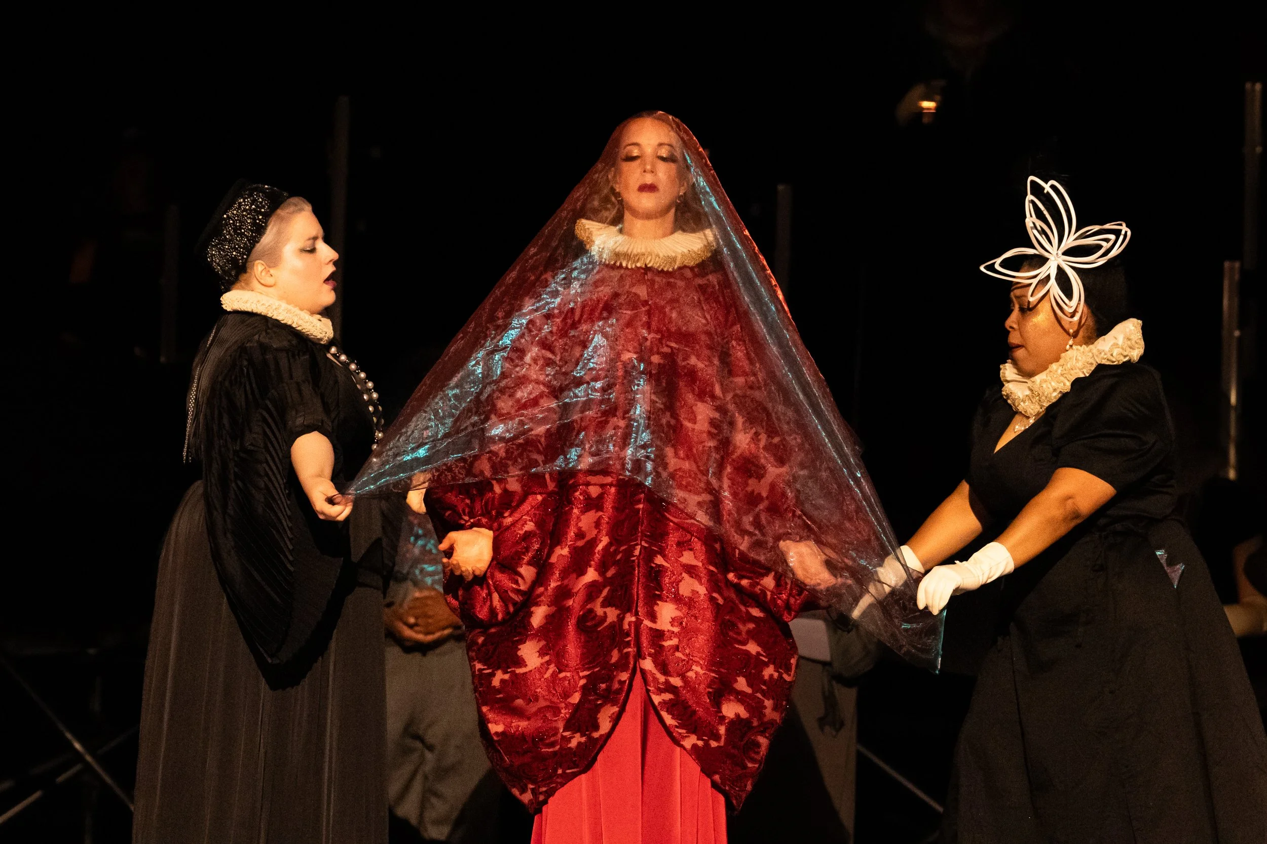 Another character who chose honor over clemency was Nurse Rebecca, sung beautifully by mezzo-soprano Michelle Mariposa, with a voice so lovely I wished her part had kept her on the stage more. Soprano Tiffany Choe played the role of Ann Putnam, singing perfectly her role of a distraught woman who first suggests witchcraft was causing the young girls’ problems. I heard her and Mariposa sing in last year’s Mud Girl, one of the American Opera Initiative’s new twenty-minute operas. I referred to them then as singing treasures; that label still works. Ann’s husband, Thomas, was scarily played by baritone Chandler Benn as her co-conspiracy theorist. Another role sung impressively was Judge Danforth, played by tenor Chauncey Parker, previously heard in WNO’s Porgy and Bess. Tenor Alexander McKissick and bass-baritone Robert Frasier sang and acted well as Reverend Parris and Reverend Hale. Tenor Nicholas Huff was bold and endearing in his attempt to defend John Proctor. While there was some ensemble singing, a specific chorus was not used.